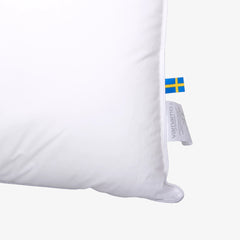 Tillverkad i Värnamo, Sverige med ett överdrag i 100% ekologisk bomullscambric och en fyllning av certifierad återvunnen silikoniserad microfiber. Resultatet är en mjuk och följsam kudde med en krispig känsla som påminner om dunkuddar.