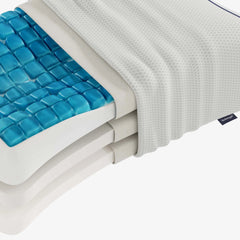 Den övre gelzonen med Technogel ger stabilt men följsamt stöd och anpassar sig efter huvudets och nackens position. I varje lager finns ett integrerat luftcirkulationssystem som, tillsammans med Technogels temperaturreglerande egenskaper, hjälper till att leda bort överskottsvärme och skapa en fräsch och behagligt sval sovmiljö.